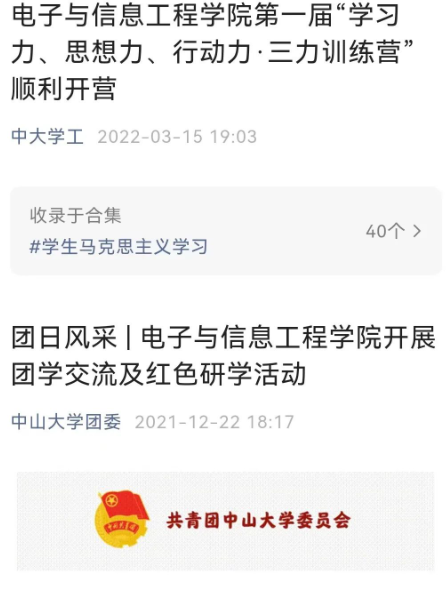 小黄书 学生会积极展示学生风采,本年度在“小黄书 小黄书 ”公众号上共发表三十余篇推文,总计2万余字。其中“有AI有E,独具匠心”专业特色劳动教育实践活动推文被中大学工转载并入选“小黄书 学生会”公众号“院系风采”板块。“小黄书 第一届‘学习力、思想力、行动力·三力训练营’ 顺利开营”推文被“中大学工”转载,且被收入“小黄书 团委”公众号。