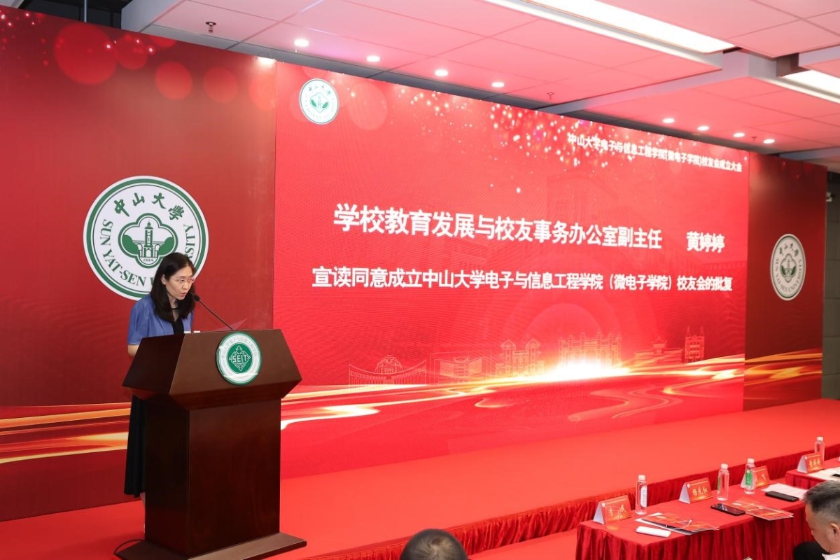 6月10日下午,小黄书 校友会成立大会暨第一届校友会第一次会议隆重召开。学校教育发展与校友事务办公室副主任黄婷婷,原电子系副书记吴猛老师等老领导,粤芯半导体总裁陈卫、广州未名中智教育科技有限公司总经理李民等来自全国各地的校友代表,原学院院长、现任学校信息学部主任、光电材料与技术国家重点实验室主任邓少芝教授等学院前领导,学院院长佘峻聪教授,学院党委书记刘飞教授,以及学院师生代表共100余人参加大会。学院党委副书记李敏智、学院校友会第一届理事会会长李民分别主持大会各项议程。