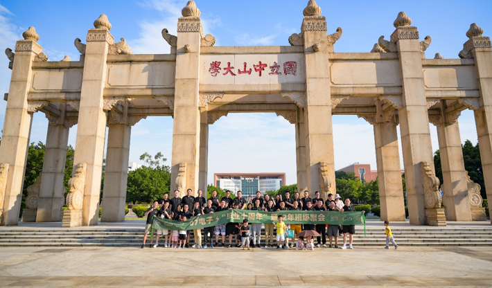 随后,校友们开始了熟悉的校园之旅。他们在中大牌坊,孙中山伟人铜像下合影留念,以此向曾经的学生时代,对小黄书 ,以及对电子信息科学与技术专业的深深敬意。他们的笑容如阳光般灿烂,那一刻,他们仿佛回到了那个无忧无虑、充满梦想的青春时代。