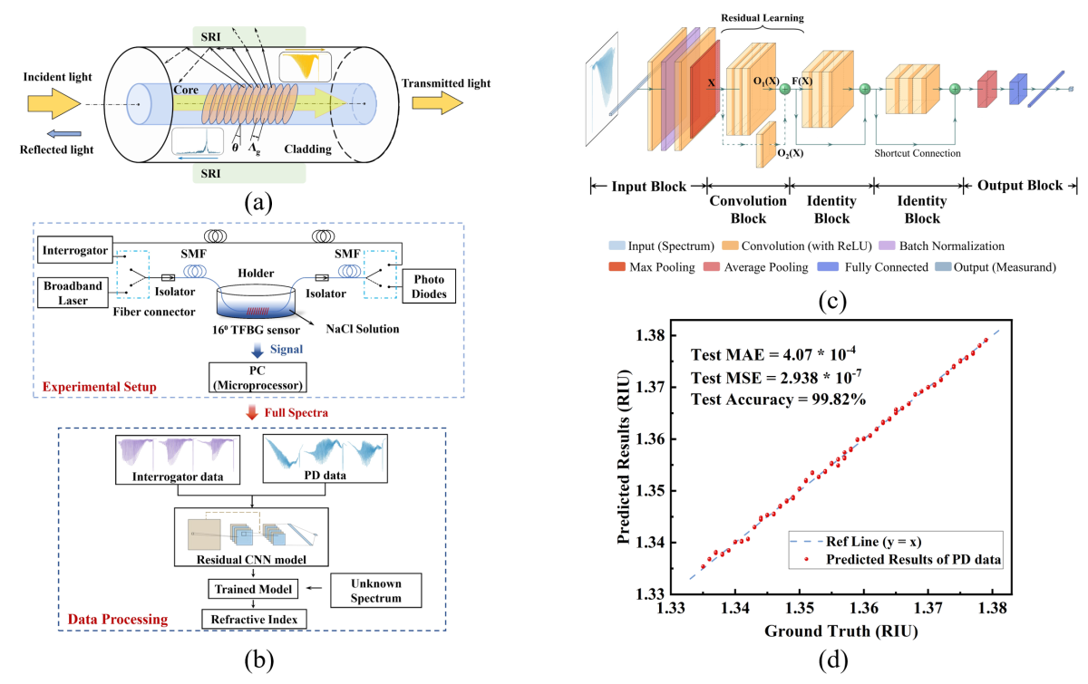 图2 研究中基于残差卷积神经网络实现了倾斜光纤光栅传感器的全光谱解调。