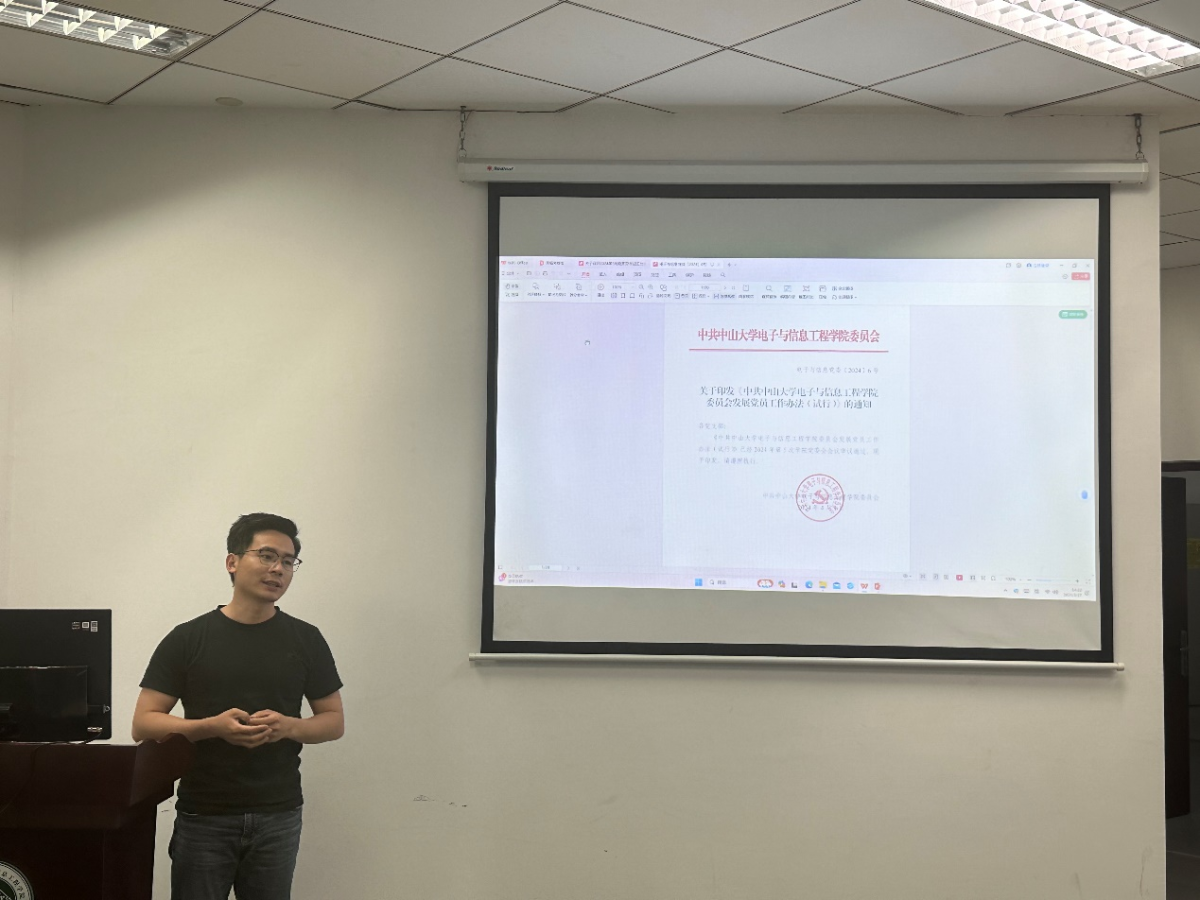 长期以来,学院党委高度重视发展党员工作。为落实立德树人根本任务,严格规范发展党员工作,保证新发展的党员质量,学院党委研究制订了《学院发展党员工作办法》(含《发展学生党员综合评价方案》)。会上,党务秘书曾世豪老师对两项制度文件进行详细解读,并强调各党支部在实际工作中应认真执行,总结经验,不断推动学院发展党员工作规范化标准化。此外,曾世豪老师还围绕“加强党员教育管理”与支部书记进行了探讨交流。
