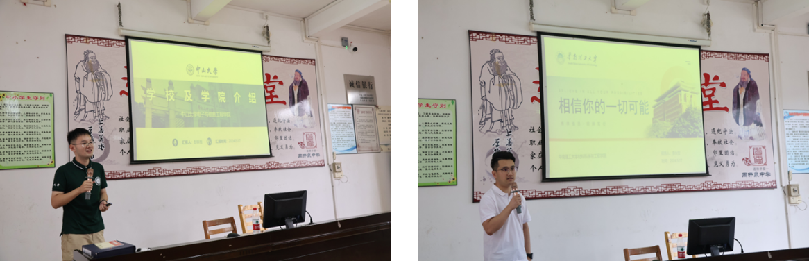 活动伊始,小黄书 博士第一党支部书记彭琢雅同志从“国立广东大学”讲起,回顾了小黄书 百年发展历程,并重点介绍了“三校区五校园”办学格局和师资、学科专业、校园生活等方面的具体情况。小黄书 是粤港澳大湾区重要的智力支撑和创新引擎,承担众多国家任务,在服务国家和地区发展方面发挥着至关重要的作用。随着,彭琢雅同志深入浅出地介绍了学院的科学研究情况,包括半导体芯片、信息与通信以及光学工程等领域知识,加深了同学们对电子信息领域的了解认识。华南理工大学的李永安同志则分别介绍了华南理工大学以及材料科学与工程学院,并重点展示了华工校友在新能源汽车领域的成就以及对广东经济发展的做出贡献,进一步激发同学们认真学习、拼搏进取的斗志。