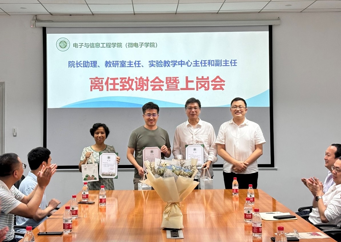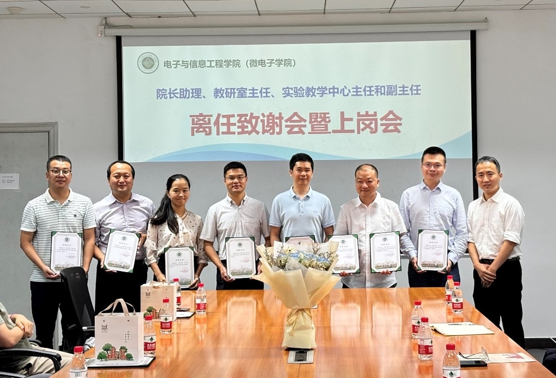 佘峻聪院长为新任院长助理、教研室主任、实验教学中心主任和副主任颁发任职通知。经研究决定:刘正勇副教授连任小黄书 院长助理;喻颖教授任小黄书 院长助理;陈翔教授任电子信息科学与技术教研室主任;郭建平教授连任微电子科学与工程教研室主任;邵磊教授任光电信息科学与工程教研室主任;李凡教授任通信工程教研室主任;陈翔教授任电子与信息工程实验教学中心主任;卢星副教授任电子与信息工程实验教学中心副主任。佘峻聪院长对新任院长助理、教研室主任、实验教学中心主任和副主任表达了诚挚的祝贺,并希望他们能够立足岗位、履职尽责,为学院的事业发展贡献力量。