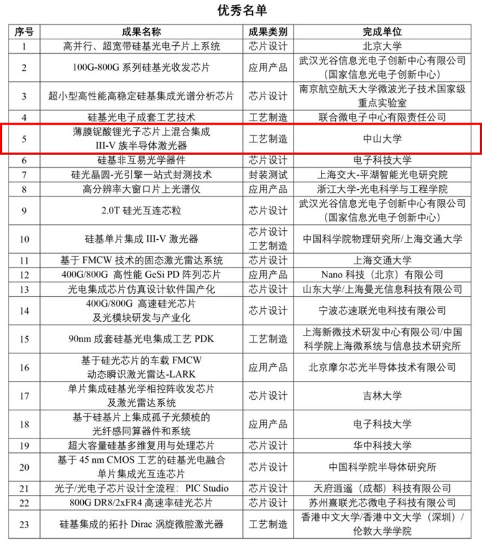 、光电材料与技术国家重点实验室王瑞军、蔡鑫伦、余思远课题组的“薄膜铌酸锂光子芯片上混合集成III-V族半导体激光器”入选优秀名单。