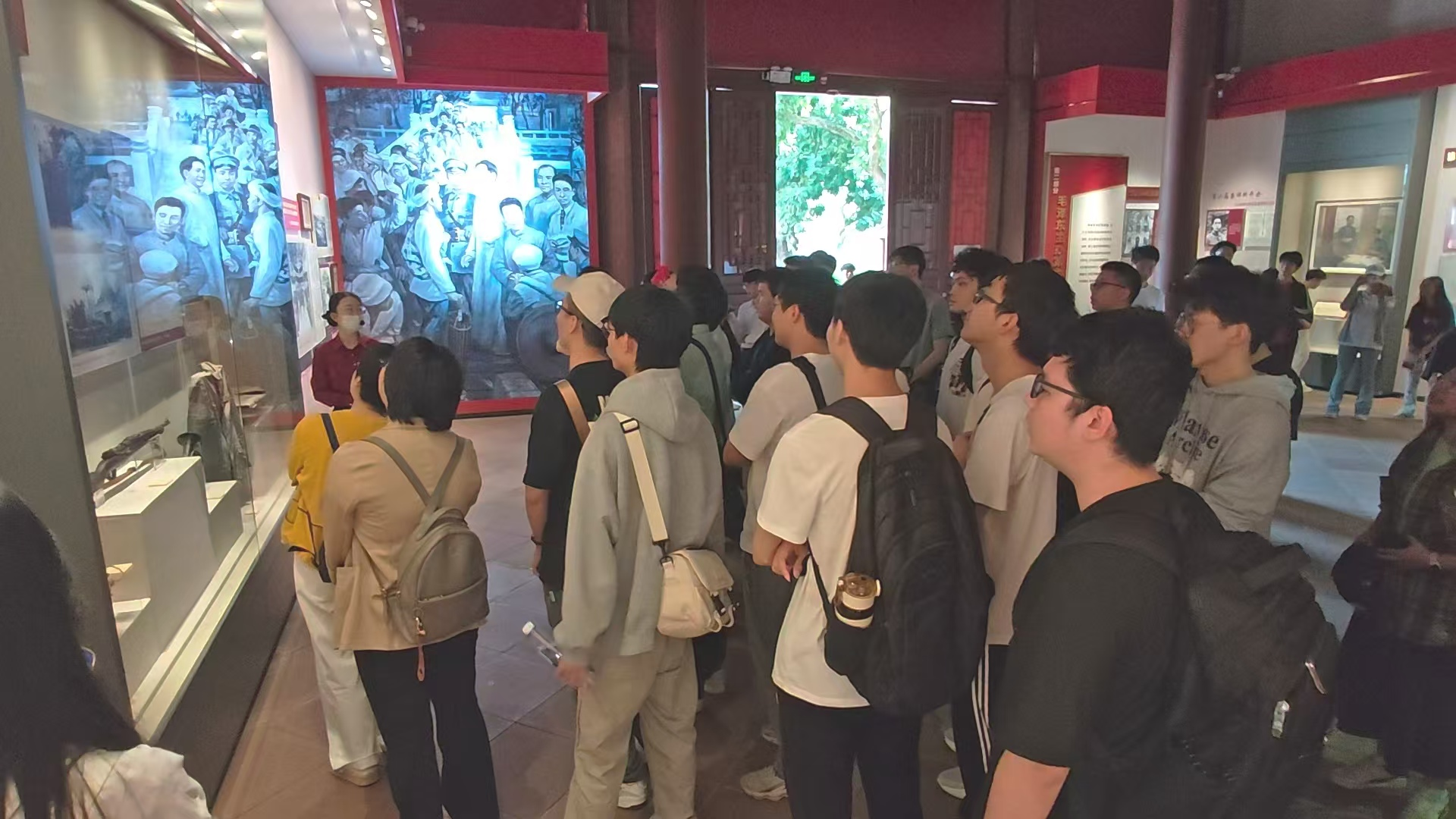 在参观中,师生们仔细了解农讲所学员所学习的各项科目。1926年7月,为激励国民革命军北伐誓师,黄埔军校教官编曲填词,诞生了《国民革命歌》。该曲也是农讲所学员在军事训练中学唱的歌曲。活动中,讲解员带领全体师生齐唱《国民革命歌》——“打倒列强,打倒列强;除军阀,除军阀;努力国民革命,努力国民革命;齐奋斗,齐奋斗!”重温当年北伐军誓师的铿锵豪情。歌声中,师生们不仅感受到革命先辈用音乐动员群众、鼓舞斗志的智慧与热忱,也凝聚起传承不息的奋斗力量。
