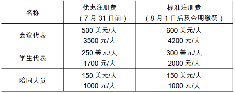 学会团体会员单位代表7 月31 日前汇款缴费,会议注册费优惠200 元/人