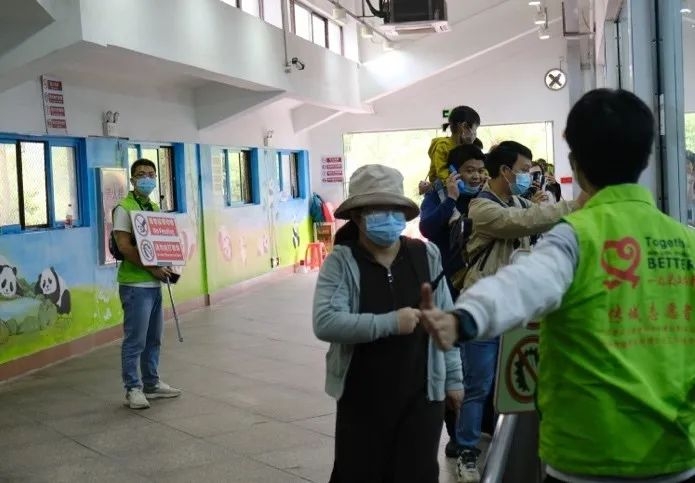 园区内动物场馆众多,游客摩肩接踵,工作环境较为复杂且艰苦。在引导客流的同时,同志们通过手持地图为游客提供分区指引和游览建议,并善意地劝阻插队、投喂动物等不文明行为。随着园内客流量持续增加,轮岗方式尚不能满足志愿服务需求。对此,轮休的同志自愿承担起物资派送、信息发布等工作,并时刻关注工作群发布的“缺人”信息,及时补位,确保志愿服务平稳、持续地进行。凭借紧密高效的沟通,同志们协助园内安保、饲养员等维持了游览秩序,并顺利地帮助多名游客找到走失的儿童。