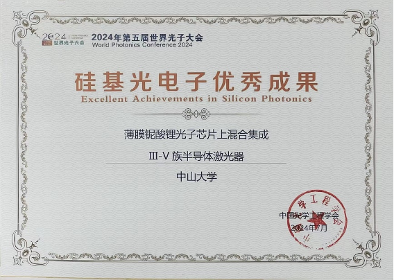 、光电材料与技术国家重点实验室王瑞军、蔡鑫伦、余思远课题组的“薄膜铌酸锂光子芯片上混合集成III-V族半导体激光器”入选优秀名单。