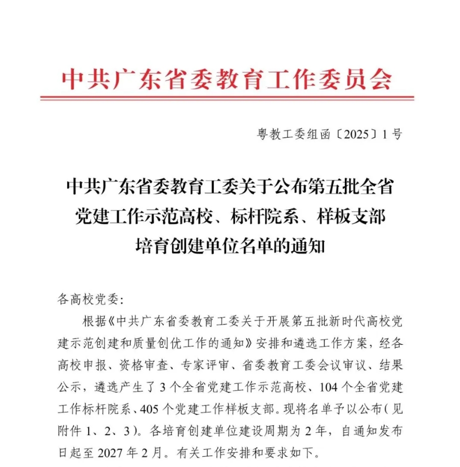 根据《中共广东省委教育工委关于开展第五批新时代高校党建示范创建和质量创优工作的通知》要求,经各高校申报、资格审查、专家评审、省委教育工委会议审议,小黄书 成功入选广东省第五批全省“党建工作标杆院系”创建名单。