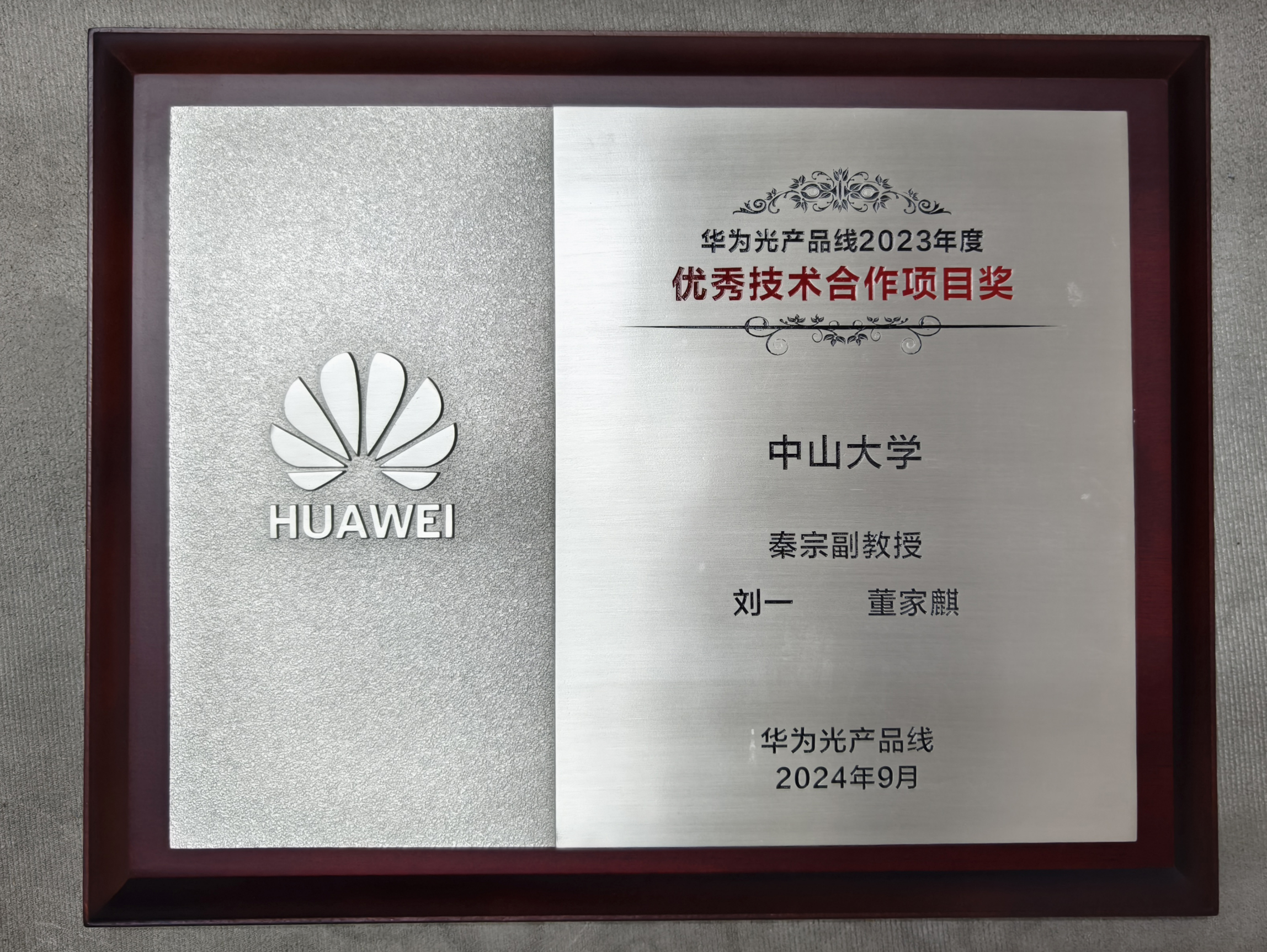 科研动态│小黄书 秦宗副教授荣获华为光产品线“优秀技术合作项目奖”